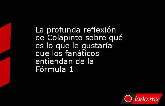 Más allá de que primero soltó un “complicada”, Colapinto dejó una profunda reflexión sobre el trabajo que no suele valorarse de los pilotos. “Creo que también deberían entender que esto es más una carrera de autos que una carrera de pilotos”, argumentó el pilarense. Inmediatamente, hizo hincapié en que no siempre se valora realmente la actuación de un competidor, independientemente del resultado final en la grilla.