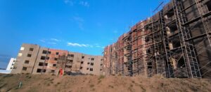 El eco se propagó entre los edificios nuevos y que aún les faltan por terminar. Las consignas no se detenían: