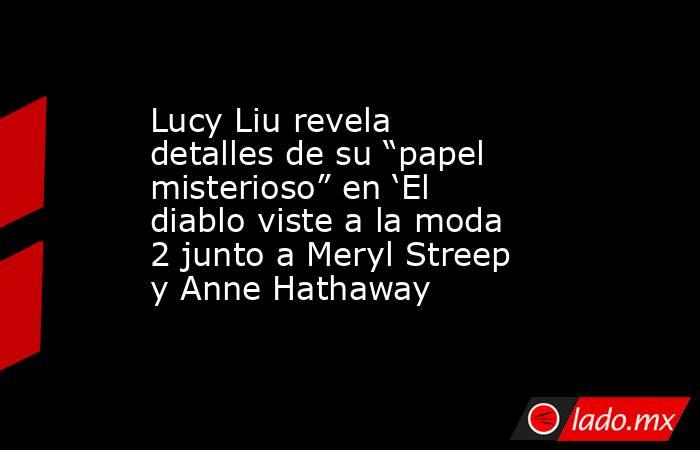 Lucy Liu adelantó detalles sobre su participación en El diablo viste a la moda 2, producción cuyo estreno está previsto para mayo de este año. En una entrevista con la revista People, la actriz se refirió al carácter de su personaje, el cual no ha sido revelado en materiales promocionales ni avances oficiales.