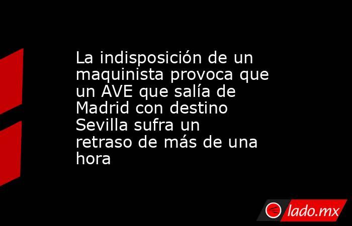 Un AVE que salió a las siete de la mañana de Madrid-Puerta de Atocha con llegada prevista a la estación de Sevilla-Santa Justa a las 9:52 horas, llegará finalmente cerca de las once de la mañana. El tren ha permanecido detenido durante más de una hora en la estación de Puertollano (Ciudad Real) por una indisposición que ha sufrido el manista.