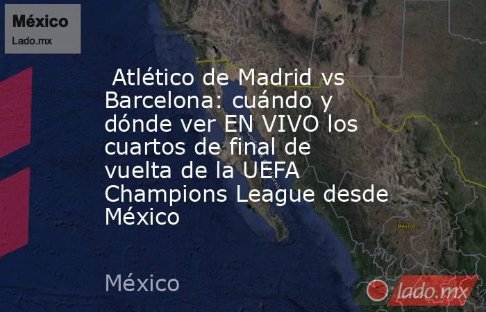 Atlético de Madrid y Barcelona se enfrentan este martes 14 de abril a las 13:00 horas (tiempo del centro de México) por los cuartos de final de la vuelta en la UEFA Champions League, donde el conjunto blaugrana buscará remontar la desventaja de dos goles del encuentro de ida.
