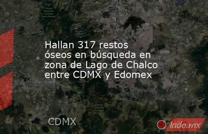 En una jornada de búsqueda realizada en la zona del Lago de Chalco, en los límites entre la alcaldía Tláhuac, en la Ciudad de México, y el municipio de Chalco, en el Estado de México, autoridades reportaron el hallazgo de 317 elementos óseos durante trabajos de localización de personas desaparecidas, informó la Fiscalía General de Justicia de la Ciudad de México.