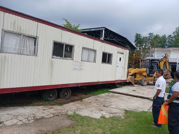 Como parte de estas acciones, el H. Ayuntamiento de Tlapacoyan llevó a cabo los trámites correspondientes para solicitar en préstamo un aula móvil, la cual se encontraba en desuso en la comunidad de Eytepequez, logrando su traslado hacia la congregación Hidalgo.