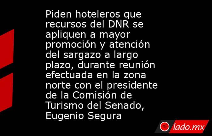 - Tras reiterar la necesidad de transparentar el manejo de los recursos obtenidos a través del cobro del Derecho de No Residente (DNR), integrantes del Consejo Hotelero del Caribe Mexicano insistieron en la necesidad de que se destine presupuesto para el fortalecimiento de la promoción turística, el posicionamiento internacional de los […]The post Piden hoteleros que recursos del DNR se apliquen a mayor promoción y atención del sargazo a largo plazo, durante reunión efectuada en la zona norte con el presidente de la Comisión de Turismo del Senado, Eugenio Segura appeared first on Noticaribe.
