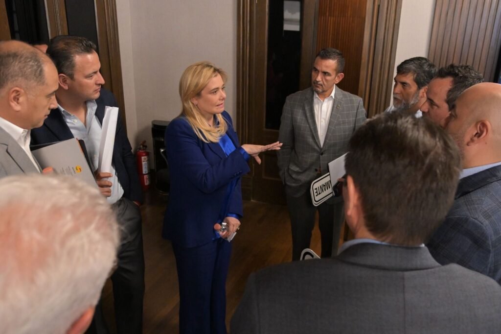 La gobernadora Maru Campos se reunió este lunes en Palacio de Gobierno con empresarios y funcionarios estatales y municipales, para analizar la situación de la ciudad de Chihuahua en el rubro de tránsito y semaforización.