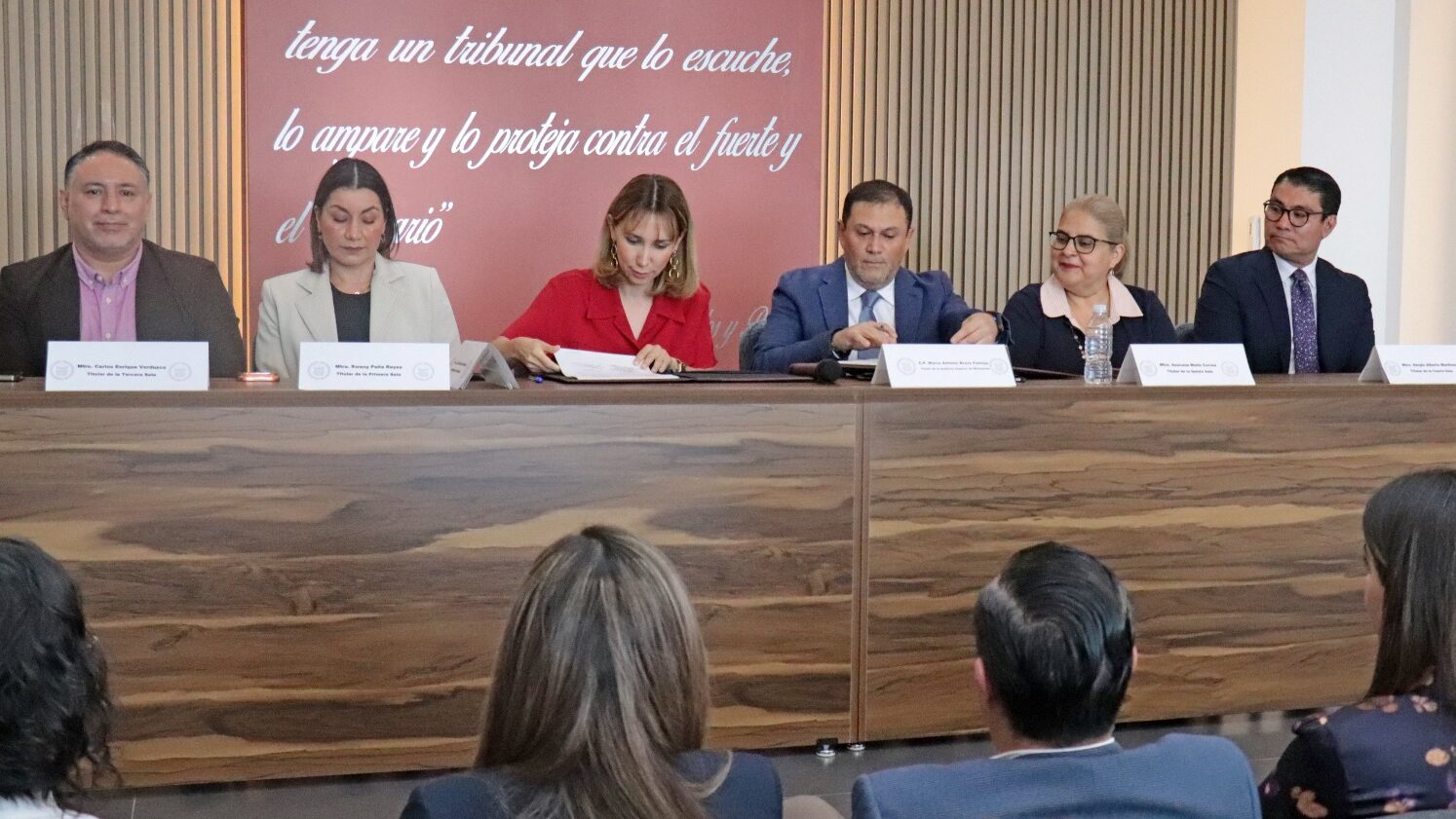Acompañada por el Pleno, la magistrada presidenta destacó que el TAAM cuenta con un “con un grupo de defensoras y defensores debidamente capacitados, preparados y especializados que brindan servicios a la ciudadanía que demanda actos de autoridad”.