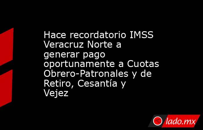 La entrada Hace recordatorio IMSS Veracruz Norte a generar pago oportunamente a Cuotas Obrero-Patronales y de Retiro, Cesantía y Vejez se publicó primero en Hora Cero.