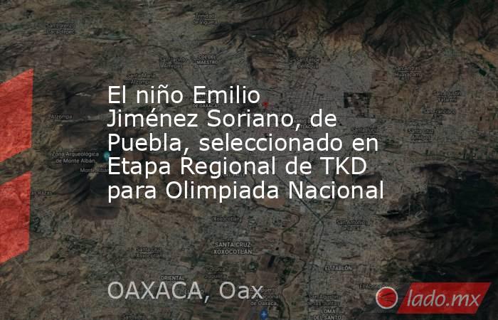 OAXACA, Oaxaca, 13 de abril 2026 (entresemana.mx). Con la partición de cinco estados del sureste del país, la UNAM y el IMSS, que enviaron a sus mejores deportistas a la Etapa Regional de Taekwondo celebrado en Oaxaca el 11 y 12 de abril, el niño Emilio Jiménez Soriano, campeón estatal en Puebla, fue seleccionado para pasar a la Olimpiada Nacional CONADE 2026 en duro combate presenciado por espectadores llegados de las entidades asistentes.