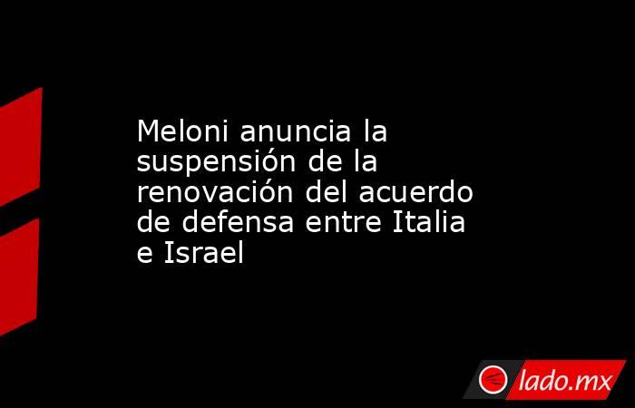 La primera ministra de Italia, Giorgia Meloni, anunció este martes la suspensión de la renovación del acuerdo de defensa entre el país europeo e Israel, firmado en 2003 y que implica el intercambio de equipamiento militar y otras tecnologías, en medio de las tensiones por la ofensiva de Estados Unidos e Israel contra Irán y los ataques israelíes contra Líbano y la Franja de Gaza.