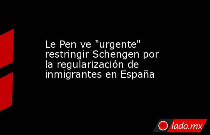 París, 14 abr (EFE).- Marine Le Pen, líder de la extrema derecha francesa, criticó este martes la medida del Gobierno español de dar permiso de residencia y trabajo en España a alrededor de medio millón de personas y consideró "urgente" restringir la libre circulación del espacio Schengen por las consecuencias que pueda tener en Francia.