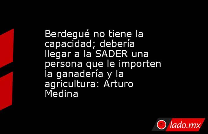 Arturo Medina, coordinador del Grupo Parlamentario del PRI en el Congreso del Estado, coincidió con el senador panista Mario Vázquez, en el sentido de que Julio Berdegué no tiene la capacidad para estar al frente de la Secretaría de Agricultura y Desarrollo Rural (SADER), además criticó que el funcionario federal se haya deslindado del tránsito de ganado centro y sudamericano a México a través de la frontera sur, debido a que según le dijo al senador del PAN, el crimen organizado está involucrado.