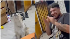 Lo que ha llamado particularmente la atención es la reacción del animal, quien parece seguir el ritmo de la canción. Cada vez que el hombre termina una frase, el perro responde con dos ladridos, generando una especie de sincronización rítmica que ha sido interpretada por los internautas como si el can estuviera “cantando”.