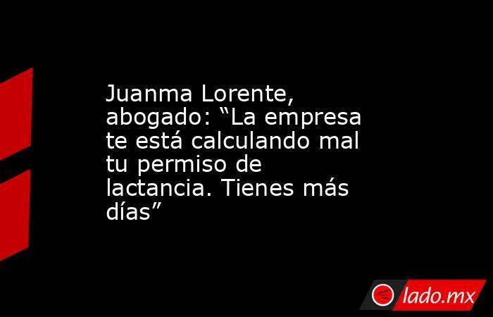 Muchos trabajadores desconocen el cálculo correcto de su permiso de lactancia y terminan recibiendo menos días de los que les corresponden, advierte el abogado Juanma Lorente, quien afirma: “Estoy harto de atender a clientes que me dicen: ‘Juanma, es que me dan quince días de lactancia, pero me lo dan naturales’. No son naturales, son días hábiles”.