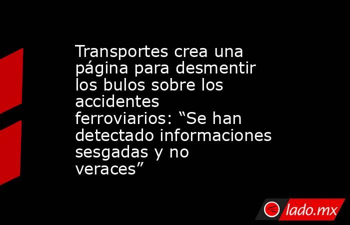 El ministerio ha denunciado en su página web que se han detectado informaciones “sesgadas y no veraces” que contribuyen a generar alarma social y desconfianza sobre la seguridad del sistema ferroviario y el uso del tren.