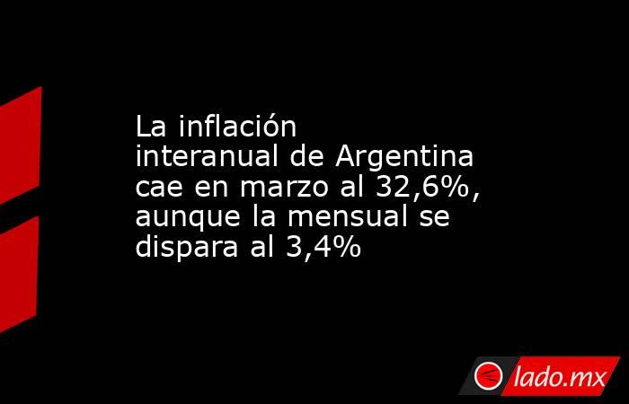 El Índice de Precios al Consumidor (IPC) de Argentina se situó en marzo en el 32,6% interanual, lo que supone un descenso respecto del 33,1% de febrero y del 55,9% de marzo del año pasado, según ha informado este miércoles el Instituto Nacional de Estadística y Censos (Indec).
