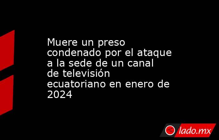 El Servicio Nacional de Atención Integral a Privados de Libertad (SNAI) ha confirmado este miércoles la muerte de Charles Gonzalo Suárez Vera, condenado por el ataque perpetrado por la organización criminal "Los Tiguerones" contra la sede de TC Televisión en enero de 2024, convirtiéndose así en el sexto reo sentenciado por el caso que fallece bajo custodia del Estado.