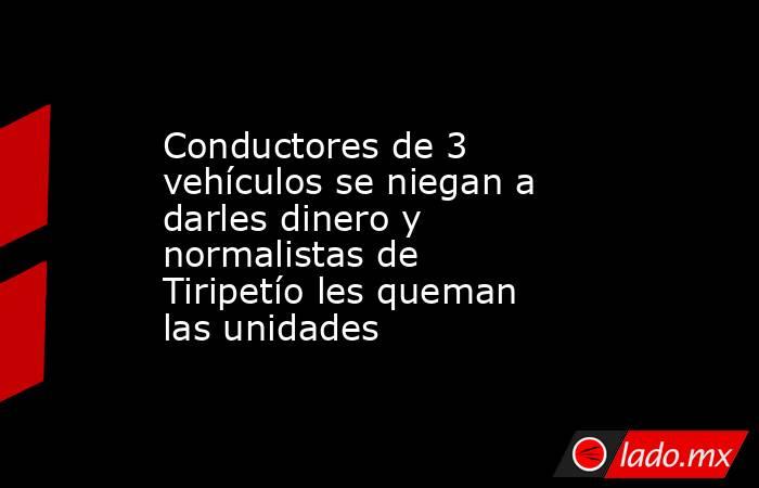 Extraoficialmente se supo que los conductores de las unidades ahora siniestradas no les quisieron dar dinero a los estudiantes que boteaban en el sitio y éstos incendiaron los vehículosLa entrada Conductores de 3 vehículos se niegan a darles dinero y normalistas de Tiripetío les queman las unidades se publicó primero en La Voz de Michoacán.