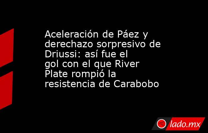 A River Plate le costó mucho abrir el marcador en el duelo ante Carabobo, por la segunda fecha del Grupo H de la Copa Sudamericana en el Monumental. El conjunto venezolano supo cerrarle los caminos, enmarañar su juego e incluso animarse a incursionar en campo rival. Sin embargo, pese al padecimiento, al Millonario le brotó la jerarquía en el momento justo. Y, a los 66 minutos de acción, Sebastián Driussi marcó el ansiado 1-0.