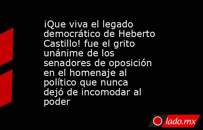 A Heberto Castillo ya lo juzgó la historia, y pasó el juicio. Es ya el luchador social que contribuyó al desarrollo de la democracia en México.