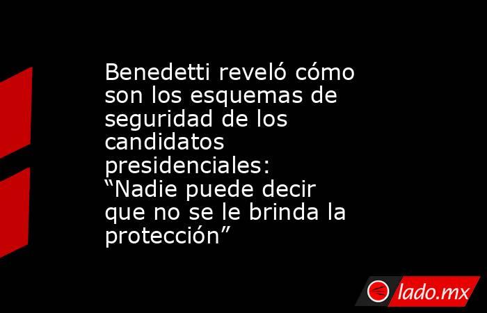 Benedetti recalcó que los esquemas de seguridad proporcionados a estos políticos implican para la UNP una inversión de $500 millones mensuales, aproximadamente, por cada candidato o candidata. Ese mismo monto también es destinado por la Policía Nacional para ese propósito.