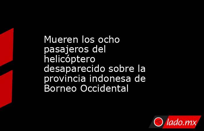 Las autoridades de la provincia de Borneo Occidental, situada en el oeste de Indonesia, han confirmado la muerte de las ocho personas que viajaban en el helicóptero desaparecido este jueves, una hora después de su despegue.