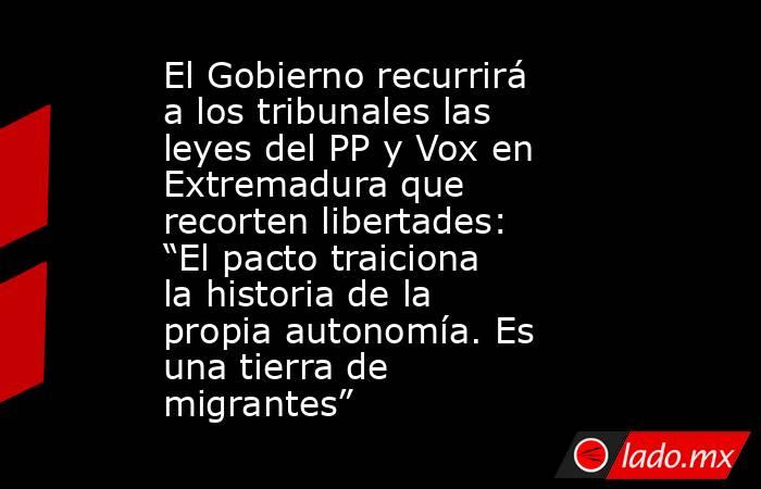 El Gobierno ha anunciado que llevará a los tribunales las medidas pactadas en el acuerdo del PP y Vox en Extremadura que vulneran los derechos de los extremeños. “Cuestiona derechos de ciudadanía y traiciona la historia de la propia Extremadura, que es una tierra de migrantes”, ha dicho el líder del Ejecutivo, Pedro Sánchez, en una comparecencia de prensa junto con el presidente de Brasil, Luiz Inácio Lula da Silva, en Barcelona.