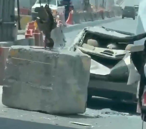 Un bloque de concreto cayó sobre un auto en movimiento este viernes alrededor del mediodía durante las obras del Metro en Apodaca, Monterrey lo que dejó a dos personas lesionadas.