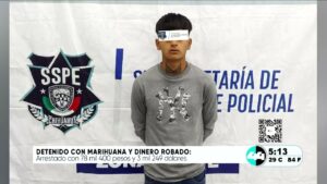 Ciudad Juárez, Chihuahua.- En un operativo conjunto entre agentes de la policía estatal, la Guardia Nacional y la Secretaría de la Defensa Nacional, se logró la detención de un joven identificado como Gabriel Leonardo C. en la zona centro. Al momento de su arresto, se le encontró en posesión de un envoltorio con marihu.na y una fuerte suma de dinero en efectivo, lo que derivó en su traslado inmediato ante las autoridades correspondientes.