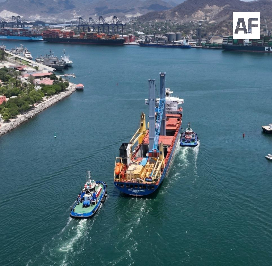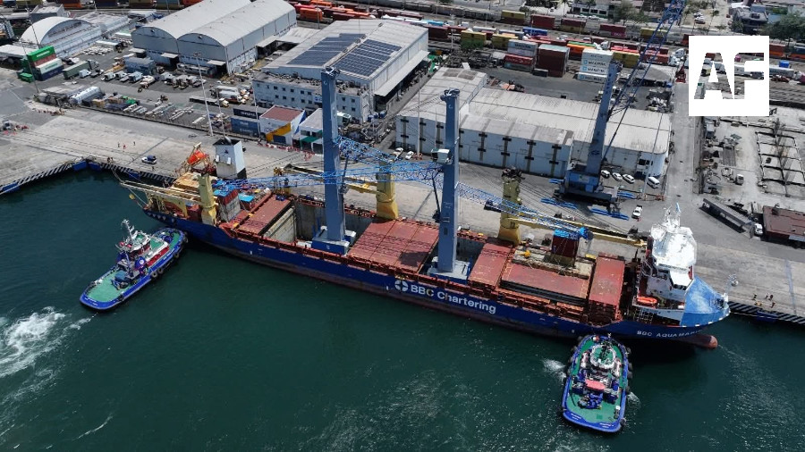 La citada maquinaria llegó a bordo de la embarcación especializada, que navega bajo bandera de Antigua & Barbuda, BBC Aquamarine, el cual se encuentra atracado dentro del recinto fiscal.