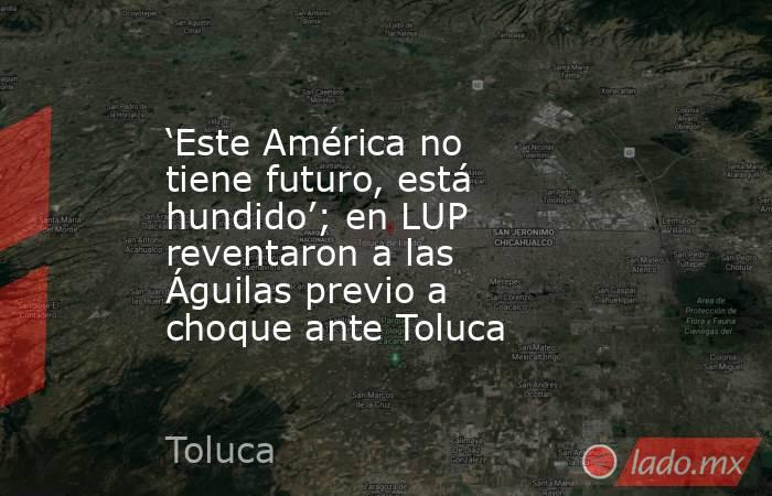 “Contra Toluca no le veo muchas posibilidades. Lo único que les queda es apelar a la grandeza, a la historia, al escudo, a la camiseta. Veo en Toluca un equipo muy equilibrado (…) así que no me parece que América vaya a resurgir“, mencionó Villanueva en LUP.