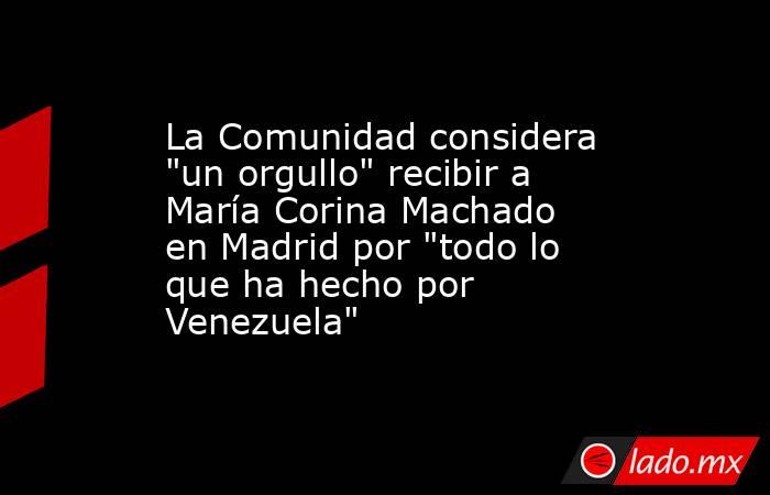 "Es un orgullo para Madrid tener a María Corina en nuestra región y, por supuesto, esa medalla tan merecida. Es una premio Nobel de la Paz que ha peleado por Venezuela, por la ciudadanía de su país, siendo profundamente perseguida", ha manifestado