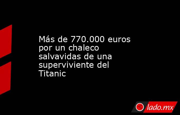Londres, 18 abr (EFE).- El chaleco salvavidas de una superviviente del transatlántico Titanic se vendió este sábado en una subasta en Inglaterra por 670.000 libras (770.500 euros), cifra que incluye la comisión del comprador, informó a EFE una portavoz de la casa de pujas.