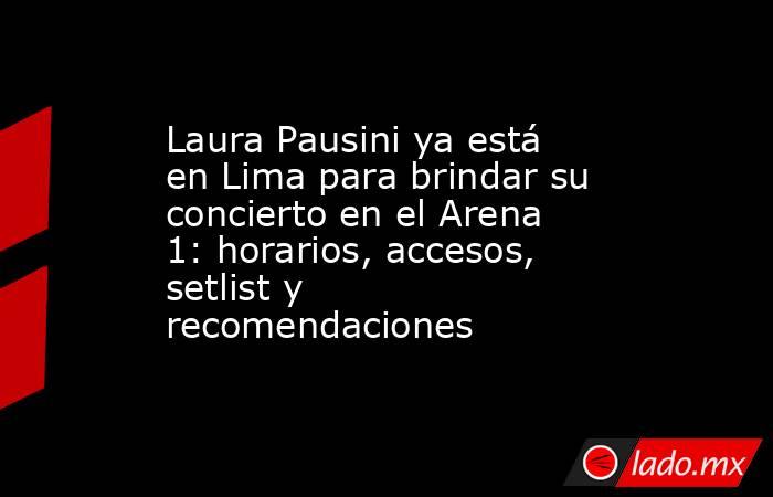 Laura Pausini tiene previsto subir al escenario a las 9:00 p. m., por lo que se recomienda llegar temprano para evitar filas y contratiempos en los controles de seguridad. El evento se extenderá por más de dos horas.