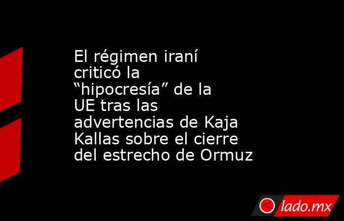 El régimen de Irán arremetió contra la Unión Europea (UE) tras las declaraciones de la alta representante de la UE para Asuntos Exteriores y Política de Seguridad, Kaja Kallas, sobre la situación en el estrecho de Ormuz, en medio de un nuevo cruce de reproches sobre la legalidad internacional y la seguridad marítima en este paso estratégico nuevamente bloqueado por Teherán desde el sábado.