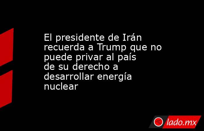 "Trump dice que Irán no debería usar sus derechos nucleares, pero ¿por qué delito?", ha declarado el presidente iraní durante una visita al Ministerio de Deportes, en comentarios a la agencia semioficial iraní ISNA. "¿Cómo es posible que sea capaz de privar a una nación de sus derechos legales?", ha añadido.