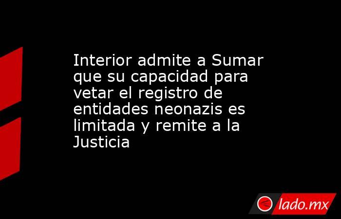 El Gobierno ha admitido que su capacidad para impedir la inscripción de partidos políticos o asociaciones de ideología neonazi es limitada, ya que su función registral tiene "un nulo contenido material de carácter decisorio" y debe ceñirse a la verificación de aspectos formales, al tiempo que subraya que el control del funcionamiento de esas formaciones "no corresponde a la Administración, sino al orden jurisdiccional".