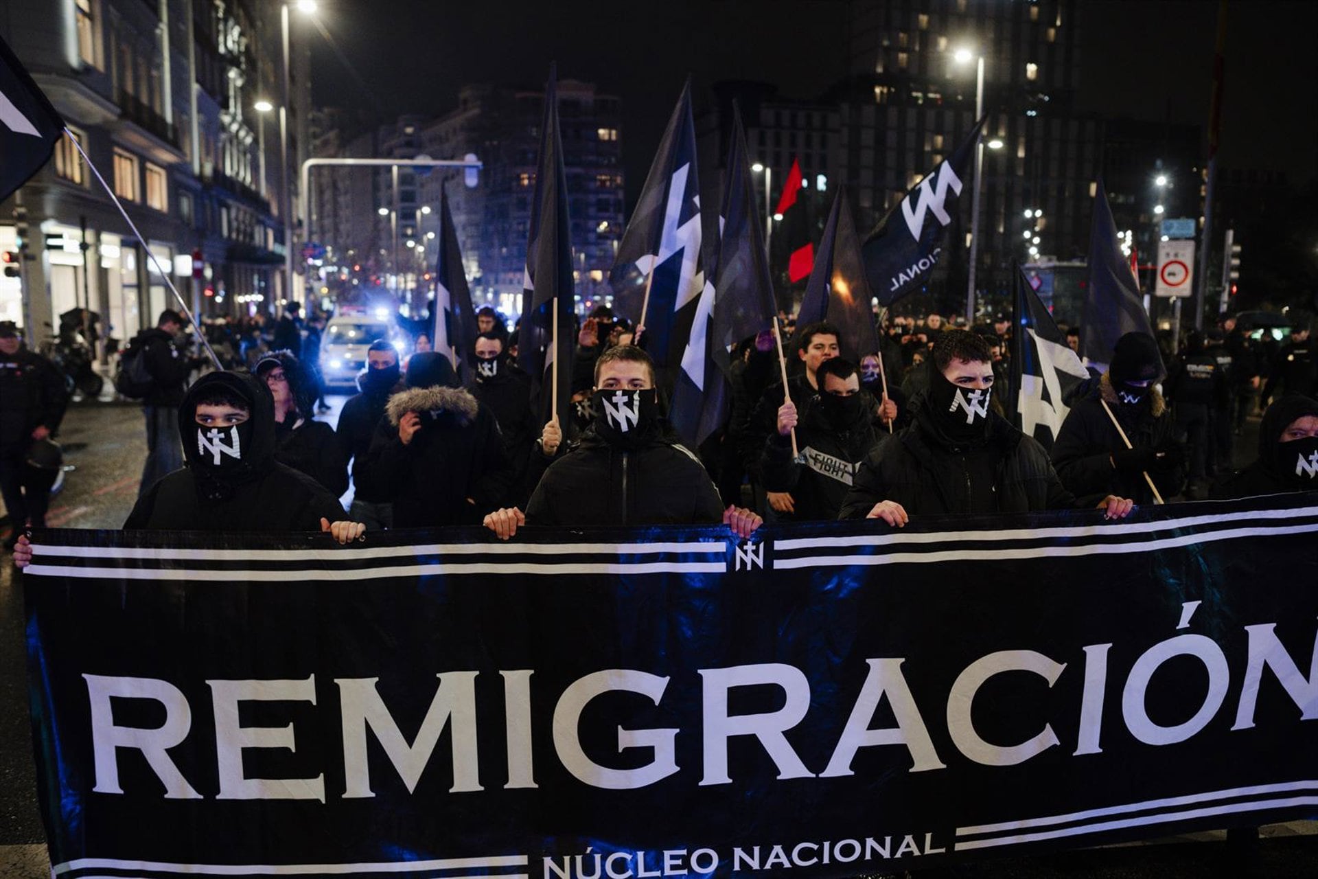 Y sostenían que, según antecedentes policiales, esa organización había participado en protestas, algunas derivaron en incidentes violentos, incluidos actos celebrados frente a la sede del PSOE, y que en redes sociales se habrían difundido contenidos protagonizados por militantes encapuchados en los que se aludiría a postulados ideológicos asociados a la ultraderecha, así como mensajes relativos a la expulsión de personas inmigrantes empleando el término "remigración".