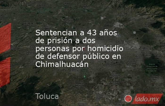 La Fiscalía General de Justicia del Estado de México (FGJEM) obtuvo de una Autoridad Judicial una sentencia condenatoria de 43 años y 9 meses de prisión en contra de Luis Ángel Cuevas Pérez y Yesenia Esmeralda García Buendía, por su responsabilidad en el delito de homicidio en agravio de un hombre que se desempeñaba como […]La entrada Sentencian a 43 años de prisión a dos personas por homicidio de defensor público en Chimalhuacán aparece primero en Así Sucede Noticias Toluca Edomex.