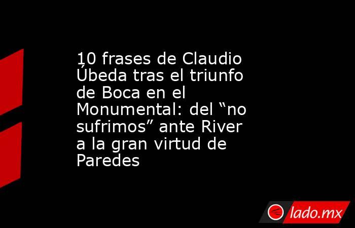 Respecto a su vivencia personal tras conquistar dos clásicos consecutivos, Úbeda aseguró: “Lo vivo con la misma tranquilidad que he pasado estos cinco meses. Yo soy un tipo bastante tranquilo para saber en el contexto en el que uno está trabajando y las presiones y las obligaciones que uno tiene en un club tan grande como Boca. Sabemos que son exigencias diarias y que tenemos que responder a esas exigencias todos los días”.