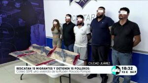 La situación derivó en la detención de 15 personas, presuntos traficantes de personas conocidos como “polleros”, quienes operaban en este sector de la frontera. Durante el despliegue policial en las calles aledañas, las autoridades lograron asegurar un importante arsenal que incluía arm.s largas y cortas, equipo táctico y diversos cartuchos útiles, herramientas con las que sometían a las víctimas.