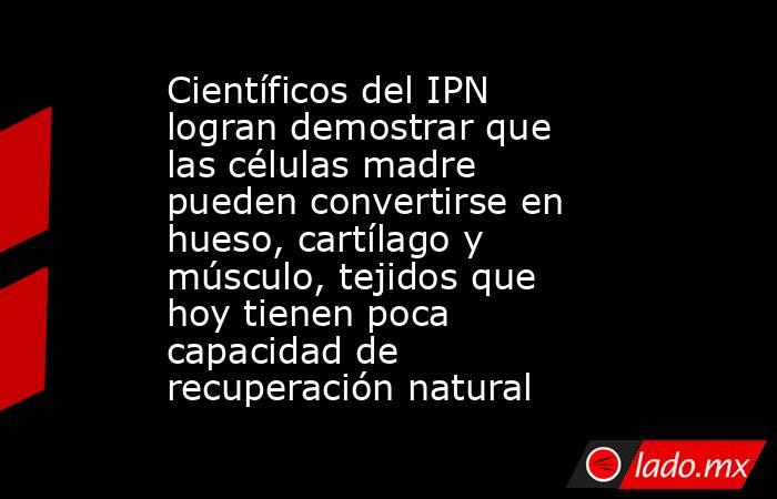 Investigadores del Instituto Politécnico Nacional (IPN) logran avances significativos en la regeneración de tejidos como hueso, cartílago y músculo a partir de células madre, informaron especialistas de la comunidad científica.