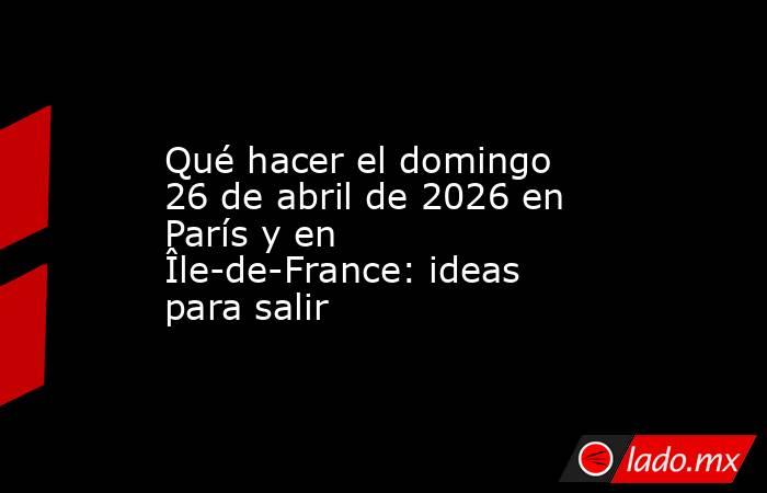 ¿Buscas ideas de plan para el domingo 26 de abril de 2026? Ya seas solo, en pareja, en familia o con amigos, Sortiraparis te propone una selección de actividades y salidas imprescindibles para hacer en París y en la Île-de-France.