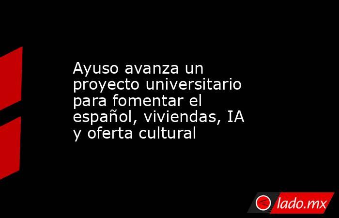 La presidenta de la Comunidad de Madrid, Isabel Díaz Ayuso, ha avanzado un proyecto universitario para fomentar el español, la construcción de viviendas para jóvenes, el uso de la Inteligencia Artificial (IA) y oferta cultural y deportiva.