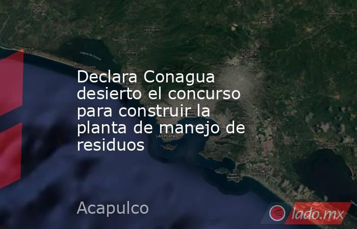 La Comisión Nacional del Agua (Conagua) declaró desierto el concurso para la construcción de una planta de manejo de residuos sólidos urbanos en Acapulco.