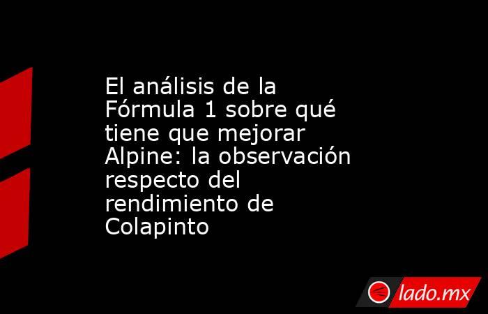 Alpine tuvo un buen inicio de temporada en la Fórmula 1 y sus pilotos cosecharon una interesante cantidad de puntos para ubicarse quintos en el campeonato. Pierre Gasly mostró un nivel superlativo para cosechar 15 unidades, mientras que Franco Colapinto también aportó con su décimo lugar en China, aunque errores del equipo y factores externos como autos de seguridad y choques lo privaron de sumar más unidades. Antes del reinicio del calendario con el Gran Premio de Miami, la categoría realizó un análisis sobre “una cosa en la que cada equipo necesita trabajar para Miami y más allá”.