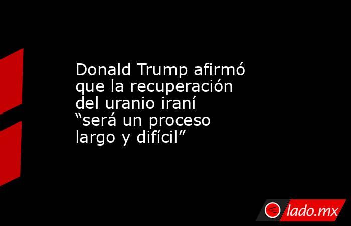 El presidente de Estados Unidos, Donald Trump, afirmó el lunes por la noche que la obtención de uranio desde Irán será “un proceso largo y difícil”, al insistir en que los ataques estadounidenses del año pasado destruyeron por completo las instalaciones nucleares alcanzadas en territorio iraní.