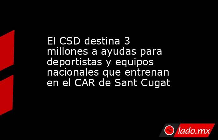 El Consejo Superior de Deportes (CSD) contribuirá con 3 millones de euros a la preparación de los deportistas y equipos nacionales en el Centro de Alto Rendimiento (CAR) de Sant Cugat, a través de una convocatoria de becas y de ayudas para concentraciones, que cubrirá los gastos derivados de su estancia en este complejo deportivo durante la temporada 2026-27.