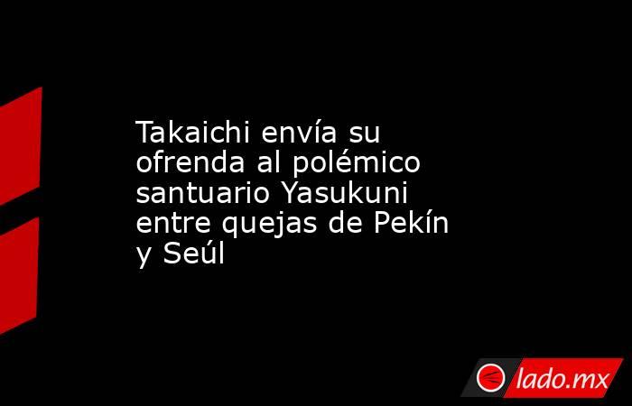 Tokio, 21 abr (EFE).- La primera ministra de Japón, Sanae Takaichi, envió una ofrenda al polémico santuario Yasukuni con motivo del inicio del festival de primavera sin llegar a visitarlo en persona, desatando las quejas de China y Corea del Sur por honrar un lugar de culto donde se conmemora a criminales de guerra.
