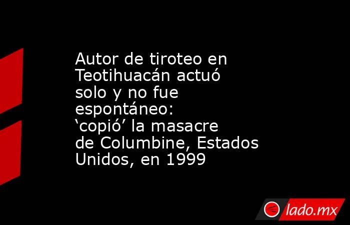 El fiscal general del Estado de México, José Luis Cervantes Martínez, informó que el ataque armado en la zona arqueológica de Teotihuacán no fue espontáneo y que el agresor actuó sin la participación de otras personas. Detalló que el responsable portaba una mochila con un arma calibre .38 especial, 52 cartuchos útiles, documentos personales, boletos de autobús, un teléfono y material escrito relacionado con hechos violentos ocurridos en la masacre de 1999 en Columbine, Estados Unidos.