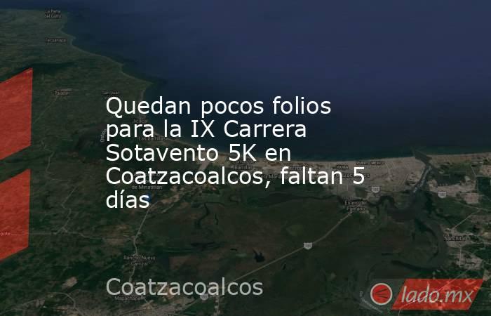 The post Quedan pocos folios para la IX Carrera Sotavento 5K en Coatzacoalcos, faltan 5 días first appeared on Diario Gráfico.